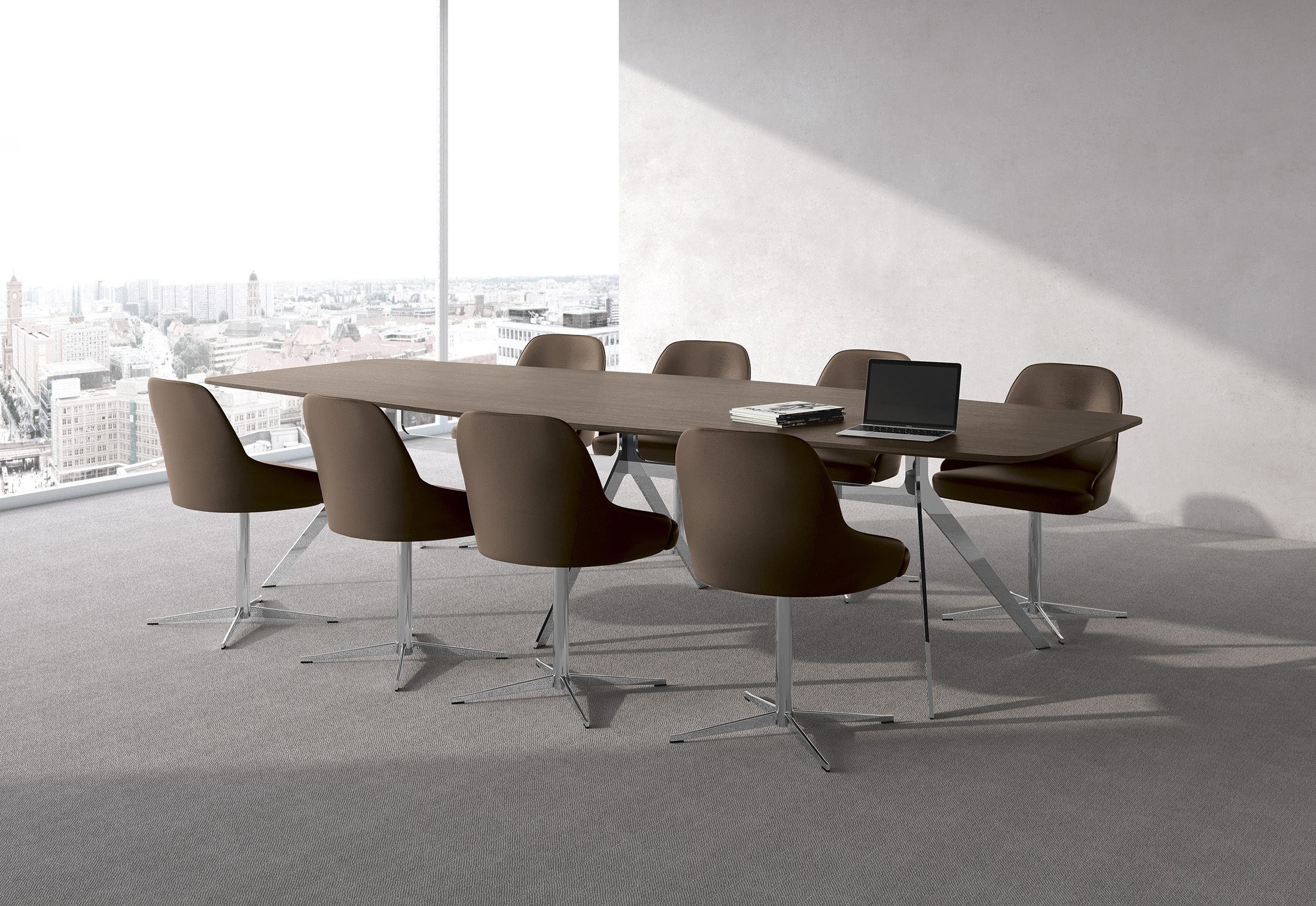 Der Graph-Konferenzsessel bringt frischen Wind in die überschaubare und seit Jahrzehnten kaum veränderte Riege exzellent gestalteter Konferenzsessel. Denn schon auf den ersten Blick besticht die grafische Qualität der modernen Form, auf die der Name verweist. Sie resultiert aus dem Kunstgriff, eine organische Sitzschale erst horizontal und vertikal zu durchschneiden, um sie dann modifiziert wieder neu zusammenzusetzen.